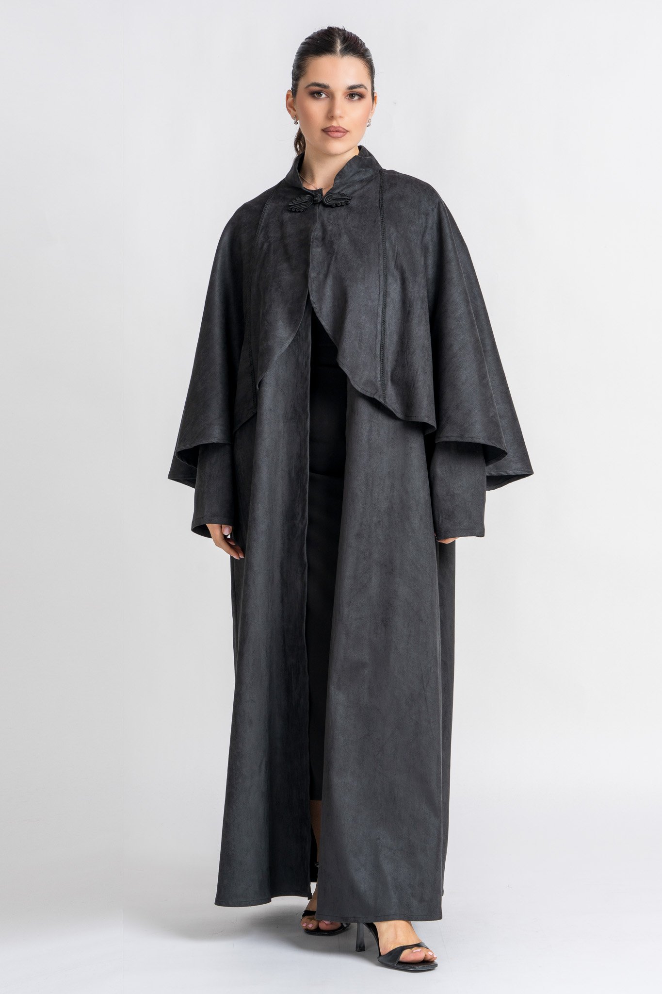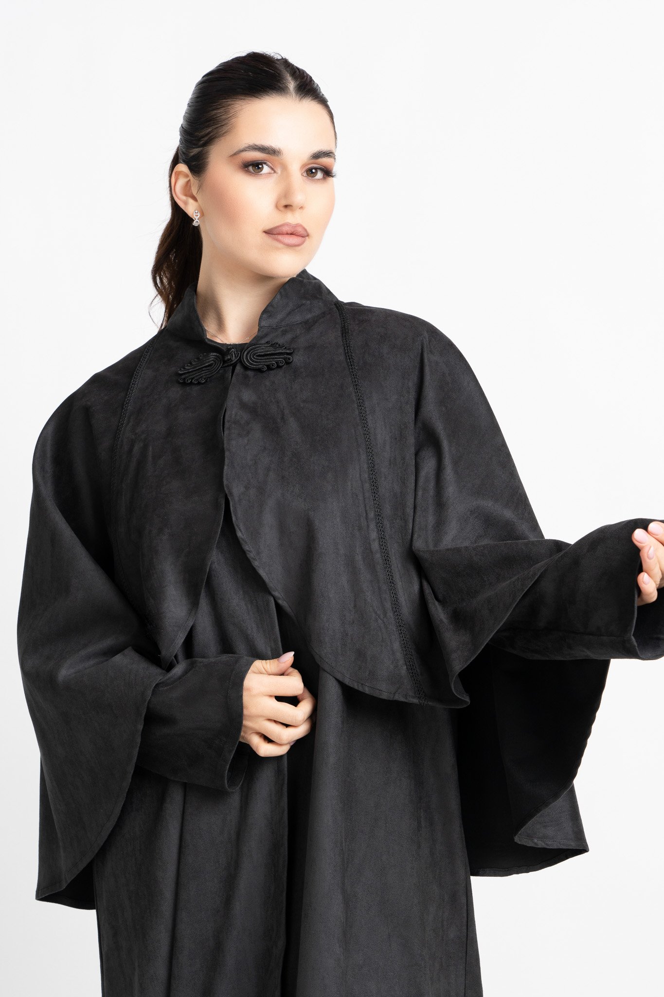 عباية شتوية ربع كلوش:نوع العباية: شتويه.قصة العباية: ربع كلوش.خامة العباية: شامواه .لون العباية: أسود زيتي .